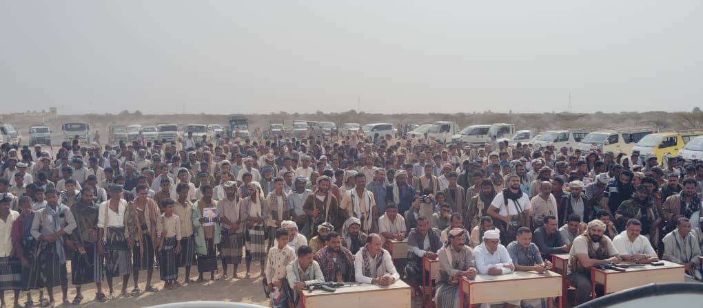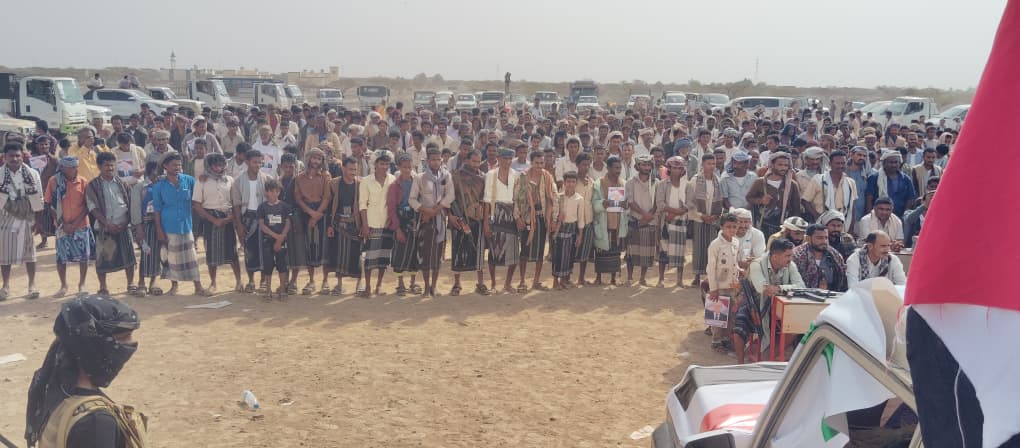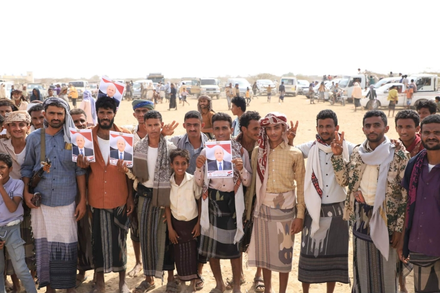 ورفع المشاركون في الحشد صور القيادة السياسية، ممثلة بفخامة رئيس مجلس القيادة الرئاسي الدكتور رشاد العليمي، وصورًا لقادة التحالف العربي، وعلى رأسهم قيادة المملكة العربية السعودية، تعبيرًا عن التلاحم الوطني والعربي في معركة المصير المشترك ضد المشروع الإيراني في اليمن.